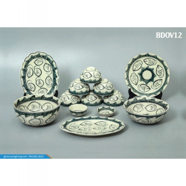 Bát Đĩa Vẽ Tay Cá Đàn - BD0V12