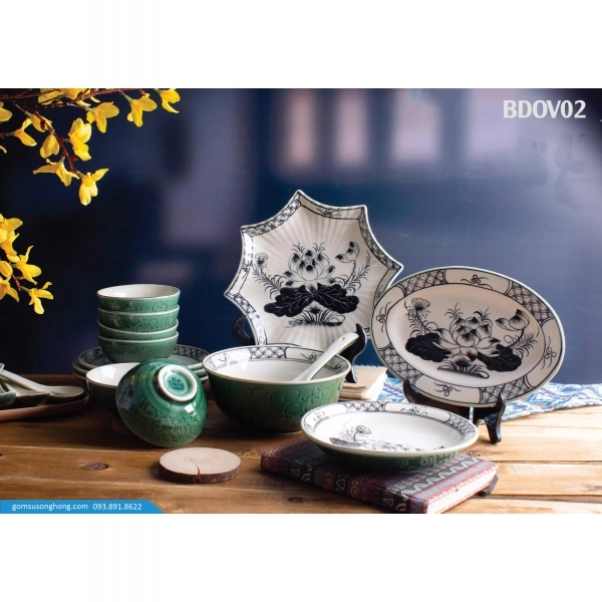 Bát Đĩa Vẽ Tay Hoa Sen - BD0V02