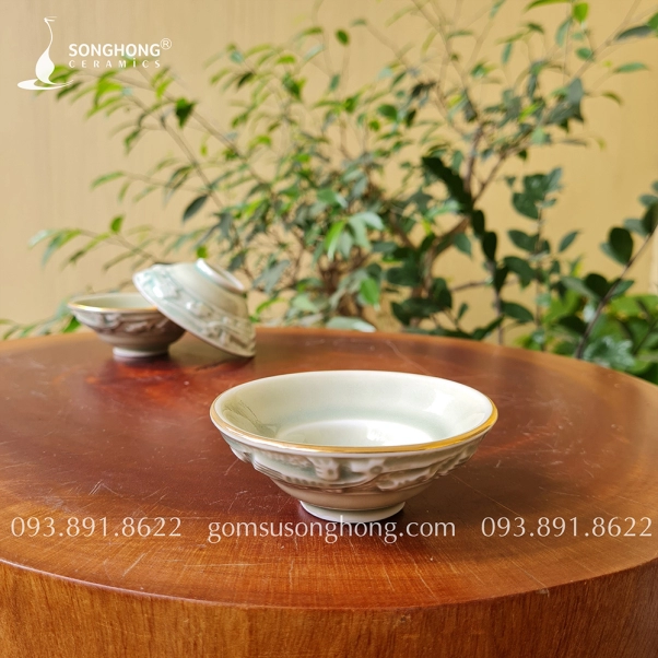 Bát Rượu Gốm Trống Đồng Đông Sơn Viền Vàng Kim