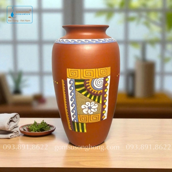 Bình Hoa Gốm Đất Đỏ Khắc Màu Nổi - Mẫu 8