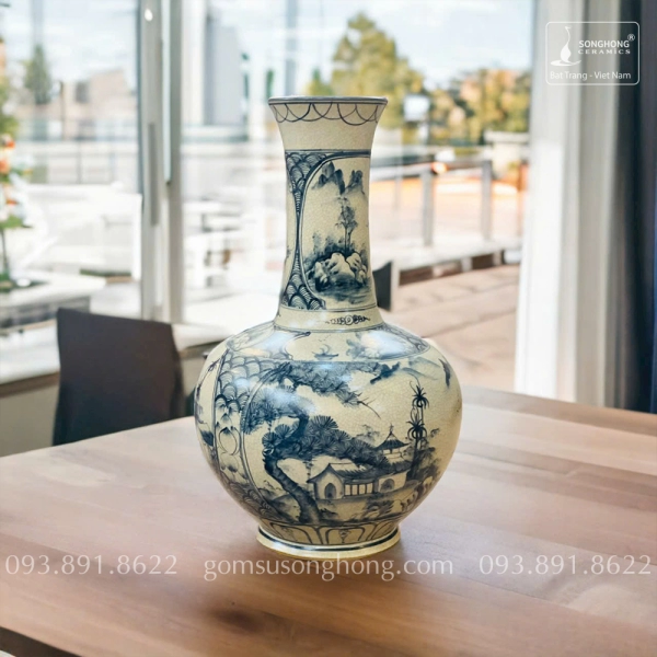 Bình Tỏi Gốm Men Rạn Giả Cổ Vẽ Tay Cây Tùng Bát Tràng - Mẫu 5