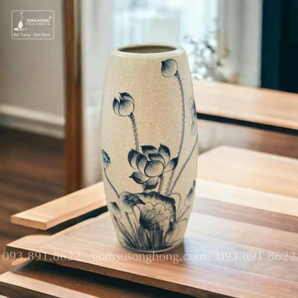 Bình Hoa Gốm Men Rạn Giả Cổ Vẽ Tay Hoa Sen - Mẫu 6