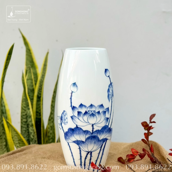Bình Hoa Sứ Trắng Vẽ Tay - Mẫu 10
