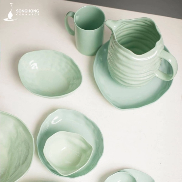 Bộ Bát Đĩa Nặn Tay - Màu Xanh Ngọc
