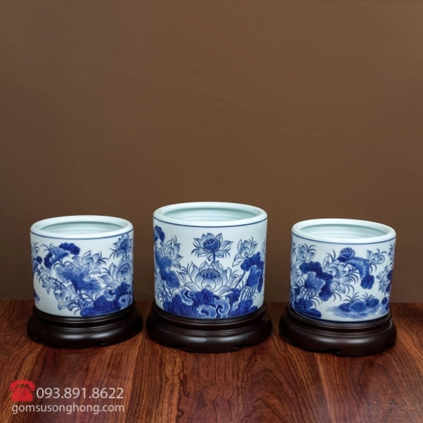 Bát Hương vuốt tay vẽ hoa sen thủ công của Songhong Ceramics