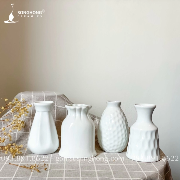 Bộ Bình Hoa Mini Sứ Trắng Decor - Mẫu 2
