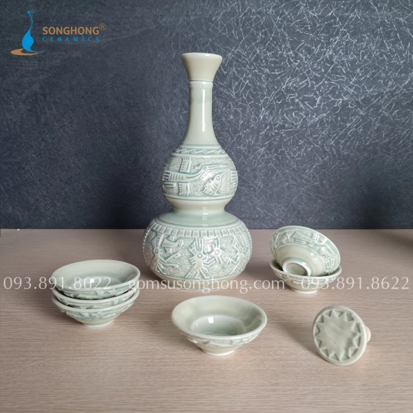 Bộ Bình Rượu Gốm Trống Đồng Đông Sơn 1.2L - M2