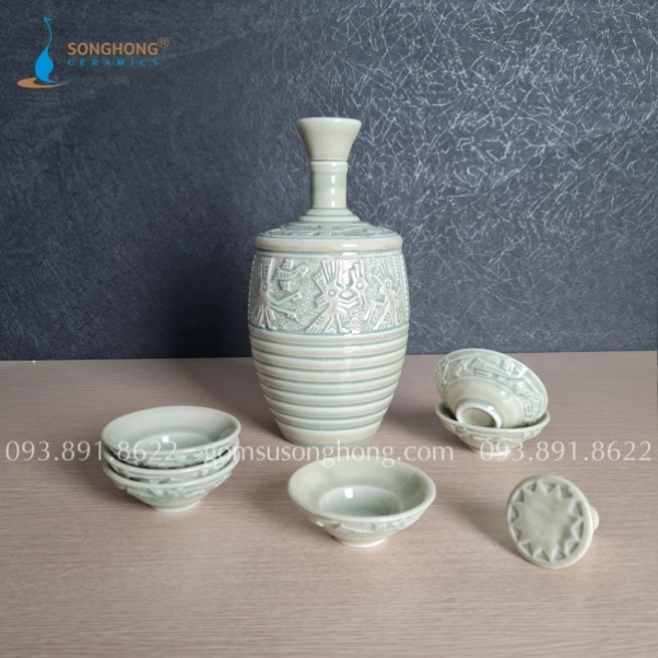 Bộ Bình Rượu Gốm Trống Đồng Đông Sơn 1.3L - M3
