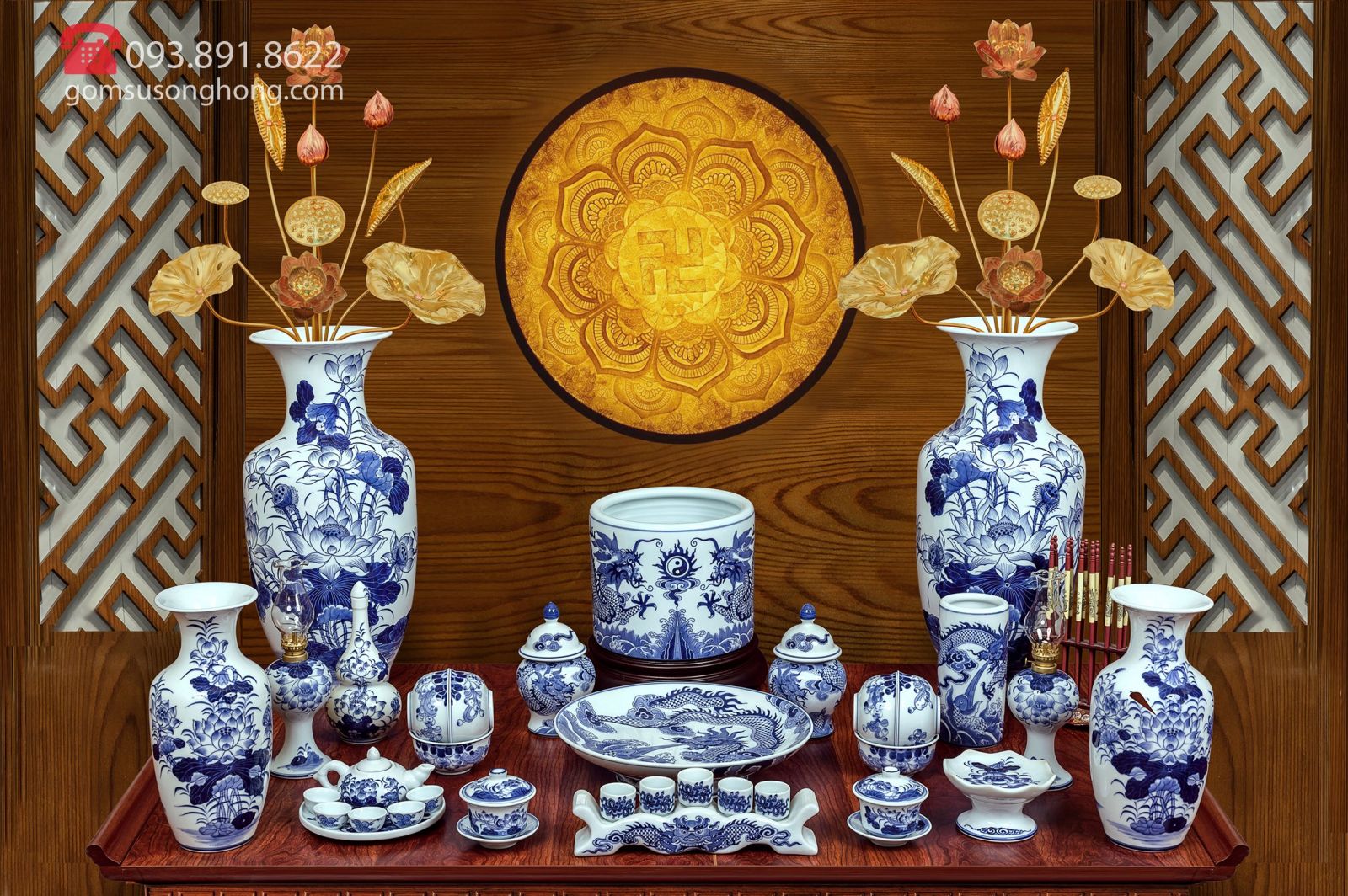 Bộ Đồ Thờ Men Rong Cổ Truyền - Mẫu 5