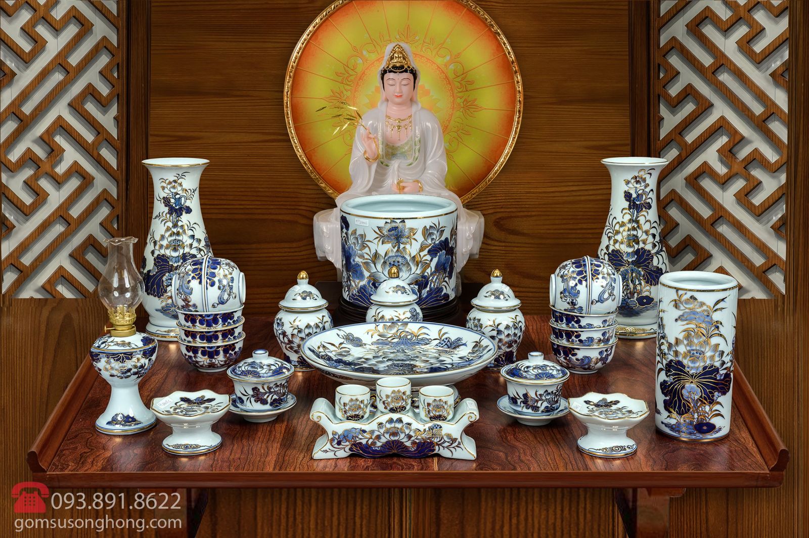 Bộ Đồ Thờ Men Rong Vẽ Vàng Kim - Mẫu 4