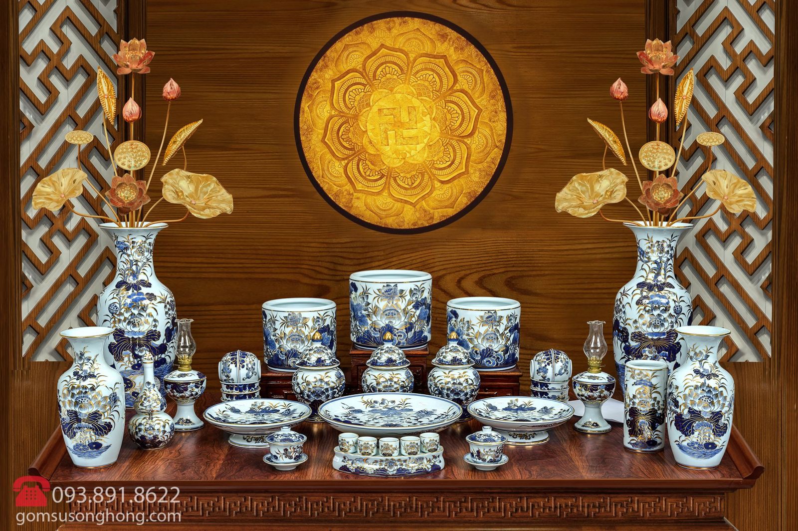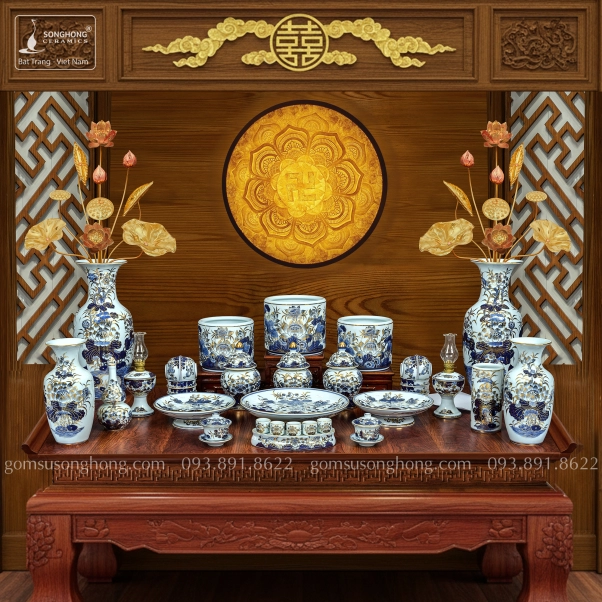 Bộ Đồ Thờ Men Rong Vẽ Vàng Kim - Mẫu 7