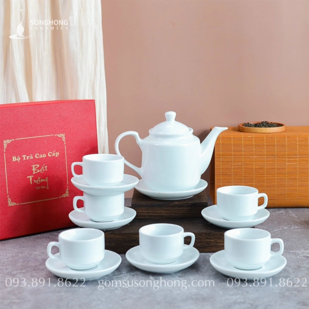 Bộ Trà (Ấm Chén) Sứ Trắng 800ml - Mẫu 6