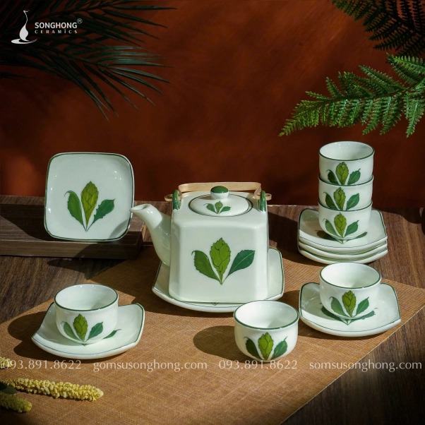 Bộ Trà (Ấm Chén) Vẽ Ngò Gai 500ml - Mẫu 4