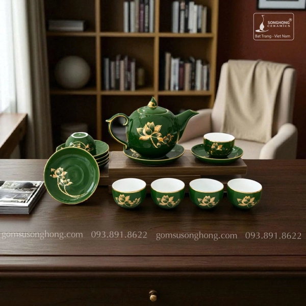 Bộ Trà Hoa Sen Vàng Kim - Mẫu 1