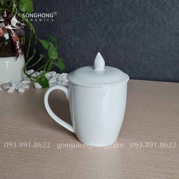 Cốc (Ca) Sứ Trắng 400ml Có Nắp - M7