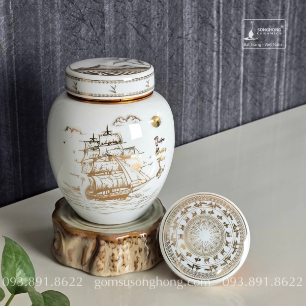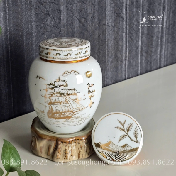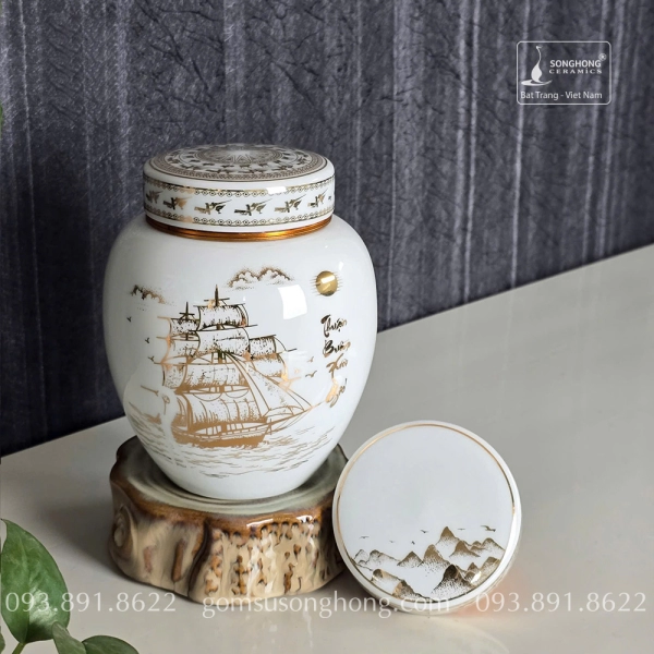 Hũ Sứ Đựng Trà 480ml Cảnh Thuận Buồm Xuôi Gió