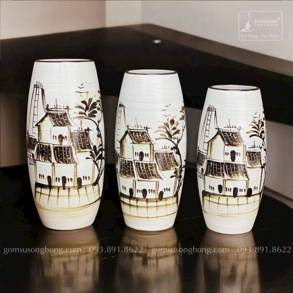 Lọ Hoa Gốm Men Khô Vẽ Tay - Mẫu 11