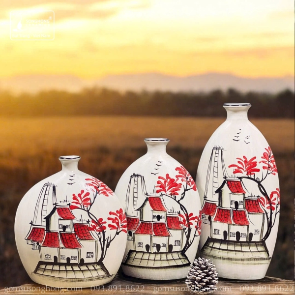 Lọ Hoa Gốm Men Khô Vẽ Tay - Mẫu 23
