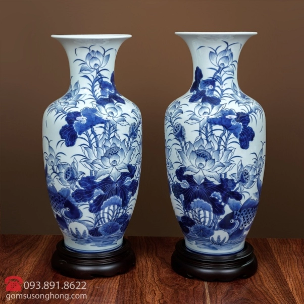 Thành phần: đất trắng, vẽ tay thủ công, tráng men rong cổ truyền thống.