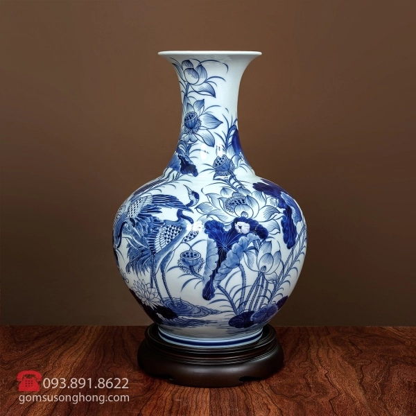 Lọ Vẽ Hoa Sen - Men Rong Cổ Truyền