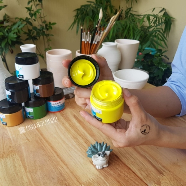 * Màu acrylic không khuyến khích sử dụng để trang trí cho các sản phẩm bằng đất mà phải nung ở nhiệt độ cao, sản phẩm sẽ bị bay màu.