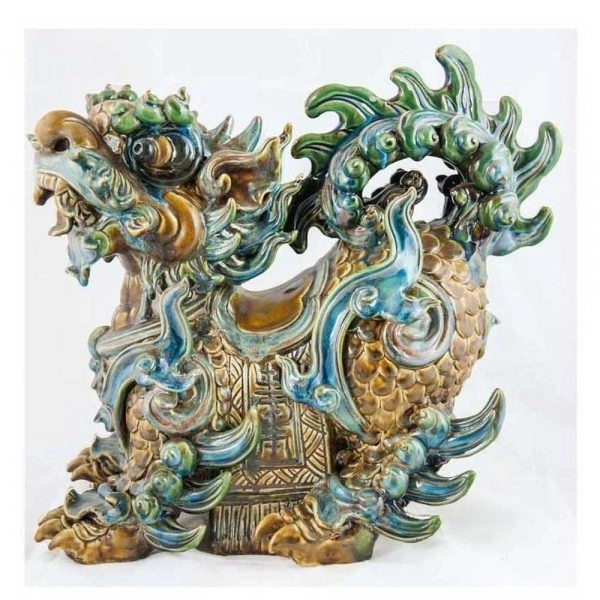 Nghê cổ đuôi xòe phong thủy Songhong Ceramics có kích thước chỉ 40cm nên thích hợp đặt tại không gian nhỏ hẹp. Hình dáng nghê hùng dũng, uy nghi, màu men hoài cổ, không bay màu, dễ lau chùi.