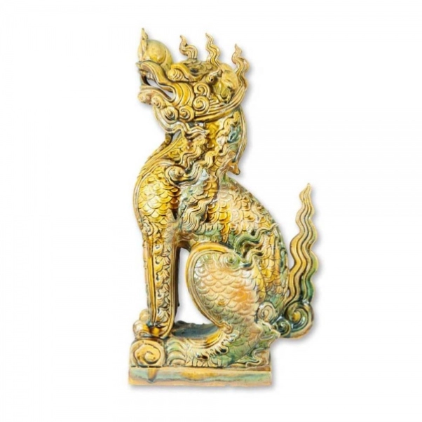 Nghê phong thủy đuôi lửa màu vàng bằng sứ: