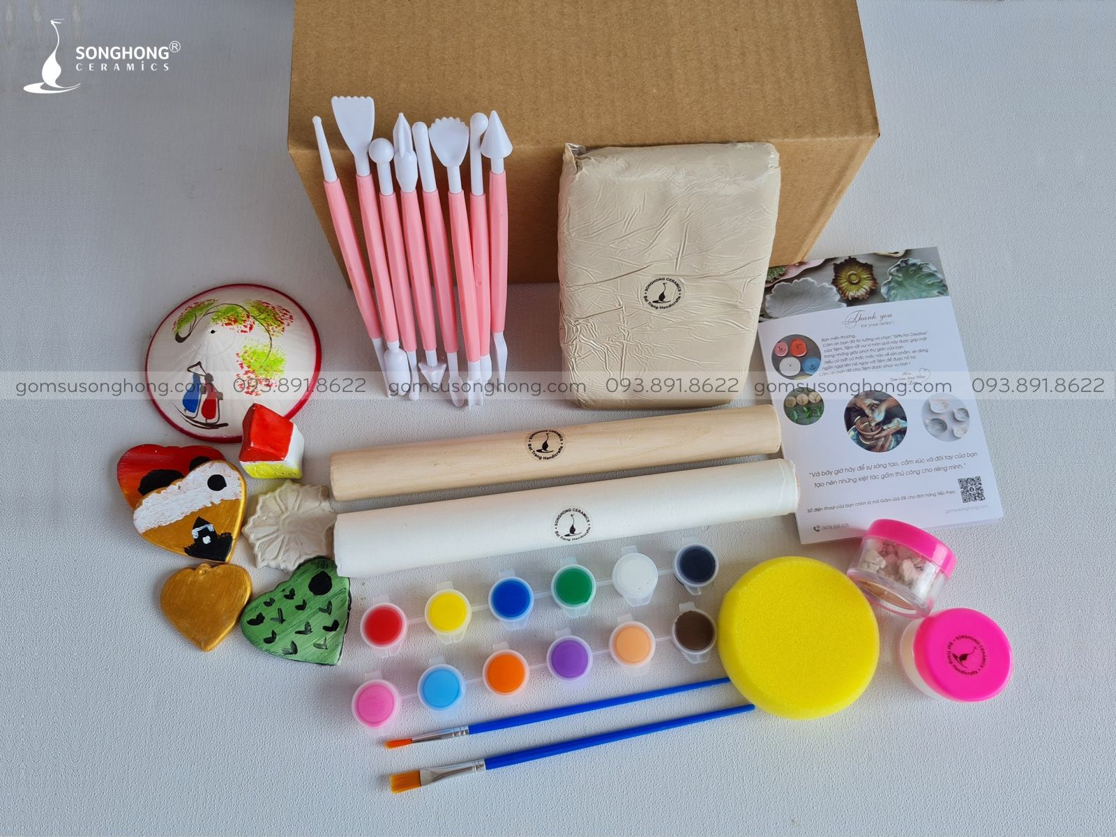 Set Trải Nghiệm Làm Gốm Thủ Công của SongHong Ceramics bao gồm: